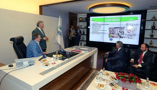 Orman ve Su İşleri Bakanı Veysel Eroğlu, Çevre ve Şehircilik Bakanı Mehmet Özhaseki ile birlikte Büyükşehir Belediye Başkanı Mustafa Çelik´i ziyaret etti. Bakanlara Kayseri´de yapılan yatırımlarla ilgili bilgiler veren Başkan Çelik, iz bırakacak projeleri hayata geçirmeye devam ettiklerini söyledi. Orman ve Su İşleri Bakanı Eroğlu, ziyaretin ardından ilçe belediye başkanları ve sulama birliklerinin de katılımıyla Büyükşehir Belediye Meclis Salonu´nda yatırım toplantısı gerçekleştirdi.