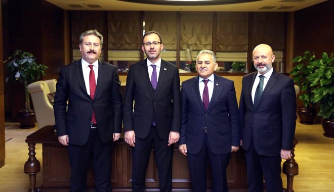 Melikgazi Belediye Başkanı ve Kayseri Büyükşehir Belediye Başkan Adayı Dr. Memduh Büyükkılıç, Ankara´da sürdürdüğü temasları çerçevesinde Kocasinan Belediye Başkanı Ahmet Çolakbayrakdar ve Talas Belediye Başkanı Mustafa Palancıoğlu´nun da eşlik ettiği ziyaretlerde Sanayi ve Teknoloji Bakanı Mustafa Varank ile Gençlik ve Spor Bakanı Mehmet Muharrem Kasapoğlu´na nezaket ziyaretinde bulunarak 150. Yılda 150 Vizyon Proje içerisinde yer alan projeler hakkında bilgiler verdi.