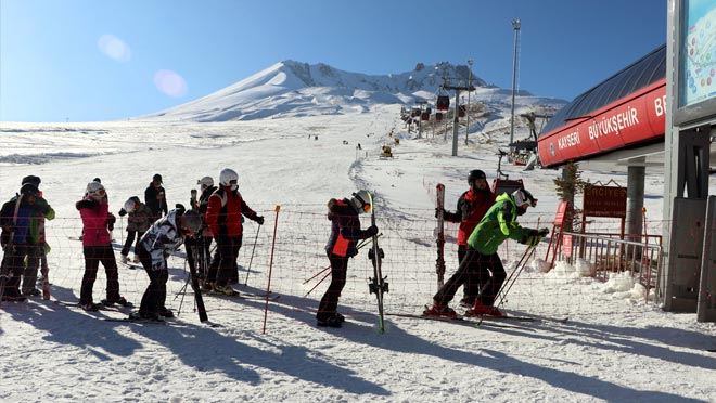 İç Anadolu'nun zirvesi Erciyes Dağı, yeni tip koronavirüs (Kovid-19) salgınına rağmen dünyanın farklı ülkelerinden gelen kayakseverleri ağırlıyor.