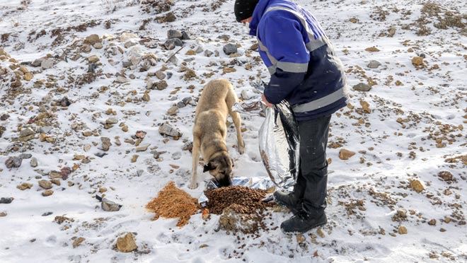 Kayseri’nin Develi ilçesinde, kış şartlarının etkisini artırmasıyla birlikte sokak hayvanları için anlamlı bir çalışma gerçekleştirildi.