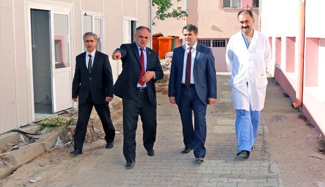 Ek hizmet binasındaki yapılan çalışmaları yerinde görmek için Yahyalı Devlet Hastanesine giden Yahyalı Kaymakamı Metin Esen ve Yahyalı Belediye Başkanı Esat Öztürk binada incelemeler yaptı.