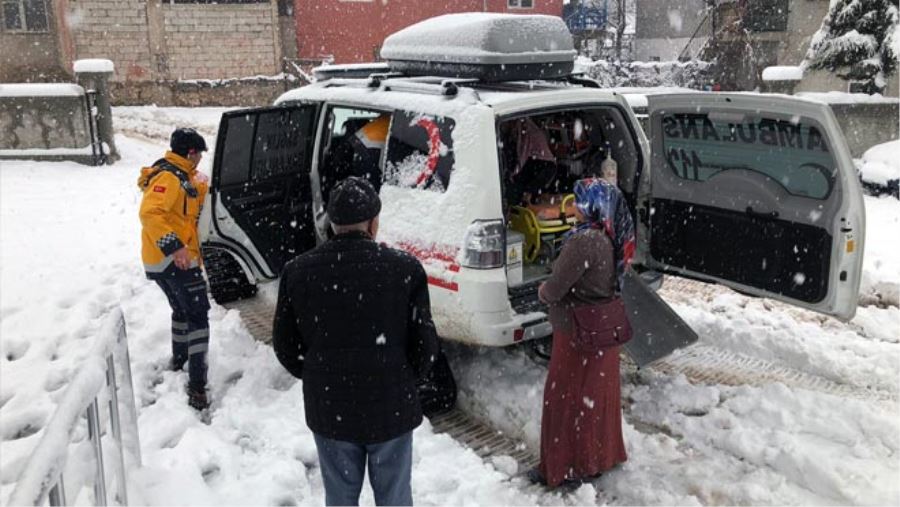 Sağlık Bakanlığının, zorlu kış şartlarının yaşandığı bölgelere tahsis ettiği paletli ambulanslar kar ve tipi nedeniyle yolları kapanan köy ve mezralarda mahsur kalan hastaların imdadına yetişmeye devam ediyor.