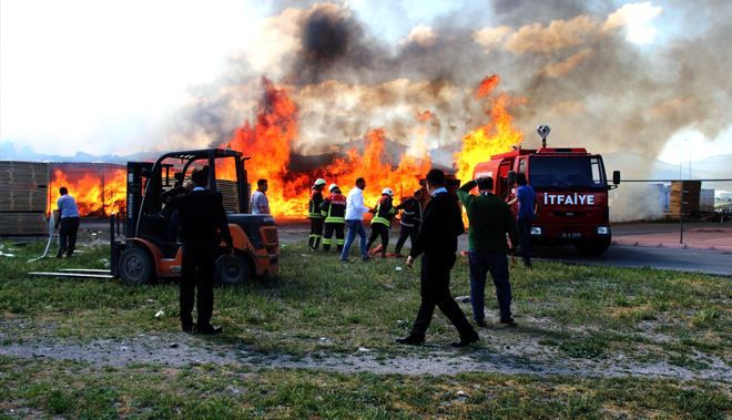 Kayseri´de kereste ve inşaat malzemeleri üreten imalathanede bilinmeyen bir sebepten dolayı yangın çıktı. Yangına çok sayıda itfaiye ekibi müdahale ederken, imalathanenin arkasında bulunan apartman sakinleri de tedbir amaçlı boşaltıldı.