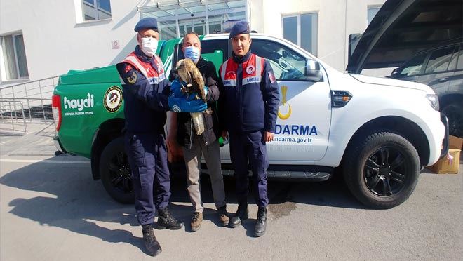 Kayseri Çevre Koruma Jandarma ekiplerince yaralı halde bulunan kızıl şahin, tedavisi için Doğa Koruma ve Milli Parklar Şube Müdürlüğü ekiplerine teslim edildi.