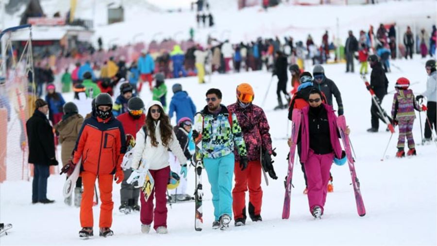 Kar kalınlığının 1 metreyi aştığı kayak merkezinde binlerce ziyaretçi güneşli havanın da tadını çıkardı.