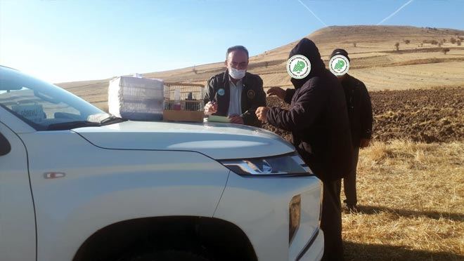 Kayseri'nin Kocasinan ilçesine bağlı Boyacı Mahallesi civarında yapılan kontroller esnasında yasa dışı av yapan 2 kişiye 8 bin 118 TL idari yaptırım, 6 bin 700 TL tazminat bedeli olmak üzere toplam 14 bin 818 TL cezai işlem uygulandı. Yasa dışı avlanan şahısların av esnasında kullanmış oldukları 2 adet tel kafese, 1 adet kuş yakalama ağına, canlı mühre olarak kullanılan 7 adet saka kuşuna, 1 adet ses cihazı ve kablolarına da el konuldu.