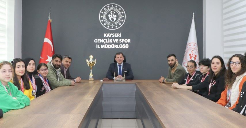 Bursa'da 2022-2023 Türkiye Snowboard Şampiyonasında sampiyonluk kupasını Kayseri'ye getiren Snowboard takımımız Erzurum'da da Okul Sporları Snowboard Türkiye Şampiyonası’nda madalyaları topladı. Snowboard takımı, başarılarını İl Müdürü Ali İhsan Kabakcı’yı makamında ziyaret ederek paylaştı ve destekleri için teşekkür etti. İl Müdürü Kabakcı, şampiyonada elde ettikleri derecelerinden dolayı sporcularımızı ve antrenörlerini tebrik ederek, başarılarının devamını diledi.