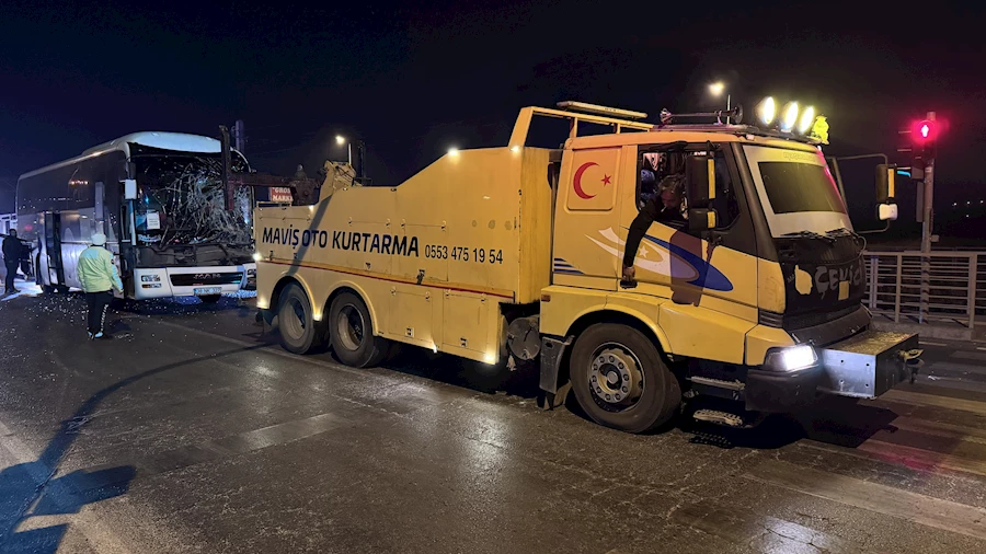 Kazada, yolcu otobüsünün şoförü ile muavin B.İ. yaralandı.