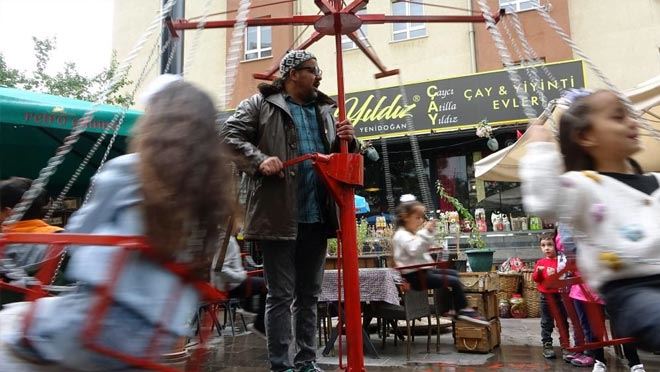 Kayseri'de girişimci Atilla Yıldız tarafından işletilen çay ocağı, müşterilerini adeta geçmişte yolculuğa çıkarıyor. Çayevindeki antika eserler, vatandaşlardan büyük ilgi görüyor. Plakçalar, teyp, siyah önlük gibi eskiye ait eşyaların bulunduğu çayevinin işletmecisi Yıldız, bu kez de çocukları sevindirdi. Bahçeye kurduğu seyyar salıncakta hem müşterilerini hem de mahallenin çocuklarını kendi elleriyle sallayan ve söylediği şarkılar ile çocukları gülümseten Yıldız, eski günleri çocuklara yaşattığı için mutlu olduğunu dile getirdi. Yıldız, "Çayevimde, Kayseri'de, hatta Türkiye'de birçok ilki yaptım diyebilirim. Bu seyyar salıncağı da işletmemize yeni aldık. Buraya gelen aileler çay içerken çocuklarını eğlendirmek için konseptimiz gereği böyle bir şeye başvurduk. Talep de bayağı var. Mahallenin çocukları da ücreti karşılığında binmek istiyor ama biz onlardan para almıyoruz" dedi.
