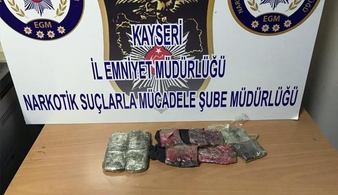 Kayseri´de Narkotik Suçlarla Mücadele Şube Müdürlüğü ekiplerinin durdurduğu otobüste yapılan aramalarda Afgan uyruklu iki şahsın sırt çantasından 950 gram esrar ele geçirildi.