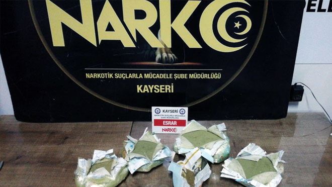 İl Emniyet Müdürlüğü Narkotik Suçlarla Mücadele Şube ekipleri ile İstihbarat Şube ekipleri tarafından yapılan çalışmalarda, S.T.'nin kente uyuşturucu maddesi getireceği bilgisi üzerine şüpheli şahsın aracı tespit edildi. Malatya yol uygulamasında aracı durduran ekipler, arama yaptı. Narkotik arama köpeğinin didik didik yaptığı aramada aracım ses sistemi içerisine zulalanmış 2 kilo 700 gram toz esrar maddesi ele geçirildi.