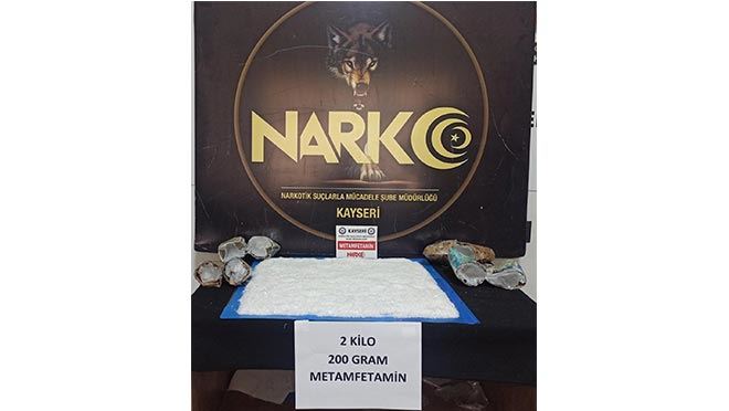 İlimizde polis ekipleri tarafından yapılan operasyonda 2 kilo 200 gram metamfetamin ele geçirildi. Edinilen bilgiye göre, Kayseri İl Emniyet Müdürlüğü Narkotik Suçlarla Mücadele Şube Müdürlüğü ve İstihbarat Şube Müdürlüğü ekipleri M.Ş.V.'nin doğu illerinden kente uyuşturucu getireceği bilgisi üzerine harekete geçti. Şahsın kullandığı aracı tespit eden ekipler, Malatya yolu uygulama noktasında aracı durdurarak arama yaptı. Narkotik arama köpeğinin de katıldığı aramada, 2 Kilo 200 Gram metamfetamin ele geçirildi.